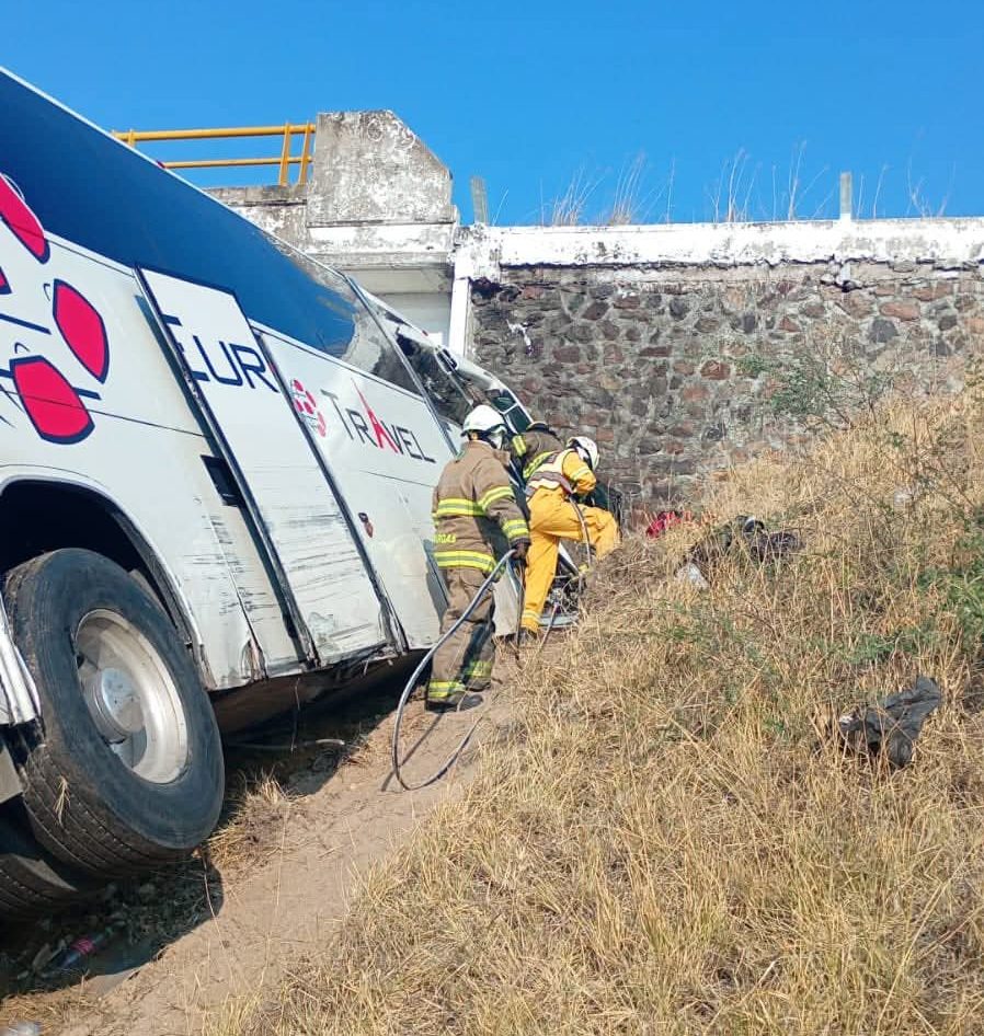 Copándaro, Mich.- Un autobús de turismo se estrelló contra la base de un puente tras chocar levemente contra la retaguardia de un camión que transportaba gas LP. El accidente dejó dos personas lesionadas y ocurrió sobre la autopista México-Guadalajara, indicaron autoridades policiales y de rescate.