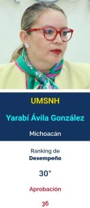 La rectora de la Universidad Michoacana, Yarabí Ávila González, bajó del lugar 28 que ocupaba a mediados de enero pasado en el ranking de 35 rectores de las 32 universidades públicas estatales del país que fueron evaluados, al puesto 30 en este segundo semestre de 2025 publicado.