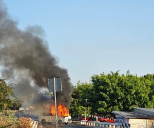 Población de Chandio, incendio de llantas.