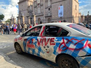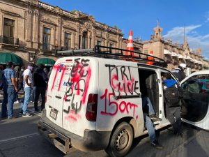 Los actos delictivos de este miércoles iniciaron desde la mañana en diversos puntos carreteros del estado, donde los llamados normalistas, con palos, piedras y cohetes amenazaron a chóferes de autobuses, así como de vehículos de empresas comerciales para trasladarse, inclusive con pasajeros, a la capital michoacana y ya sobre la avenida Madero, pintarrajear negocios, destruir cristales y otros actos de violencia.