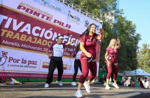 Con más de 800 personas, se llevó a cabo la Activación Física Masiva para los Trabajadores y sus Familias, como parte de la aplicación de la Línea de Activación Física «Ponte Pila», que promueve el deporte y combate el sedentarismo, en este caso, a través del Instituto del Deporte de los Trabajadores (INDET), en la Unidad Deportiva Morelos Indeco