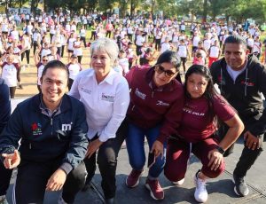 Bajo las órdenes de la instructora Mary Cielo Moreno López, más de 800 personas realizaron una rutina de ejercicio sobre la explanada de la Unidad Deportiva Morelos Indeco, para mejorar su capacidad motriz y la coordinación de movimientos.