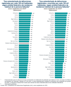 El Instituto Nacional de Estadística y Geografía (INEGI) da a conocer las cifras preliminares de las Estadísticas de Defunciones Registradas (EDR) que corresponden al periodo de enero a septiembre de 2025. Los datos que integran las EDR los suministraron 4 700 fuentes informantes.