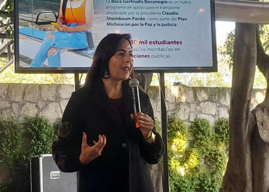 Molina Aguilar también dio a conocer que aparte de todo este presupuesto se contará con una bolsa de recurso federal por el orden de los 6 mil100 millones de pesos para toda la serie de becas que se pagan a los alumnos de los diversos niveles escolares, incluyendo la única y nueva dispuesta por Gobierno Federal dentro del Plan Michoacán por la Justicia y la Paz para dotar a 80 mil jóvenes de educación superior, llamada beca Gertrudis Bocanegra que es de apoyo a su transporte, por lo que recibirá cada alumno de manera bimestral mil 900 pesos a partir febrero del 2026.