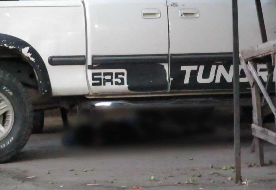 Elementos de la Dirección de Seguridad Pública y Tránsito Municipal se trasladaron al lugar, donde tirado junto a una camioneta de color blanco encontraron al muchacho tirado boca abajo con varios impactos de bala.