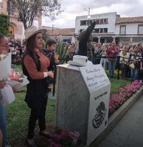 «Nosotros no vamos a arrodillarnos ante el crimen organizado, nosotros no vamos a pactar con nadie», aseveró Grecia Quiroz, durante la develación de la placa conmemorativa a Carlos Manzo.
