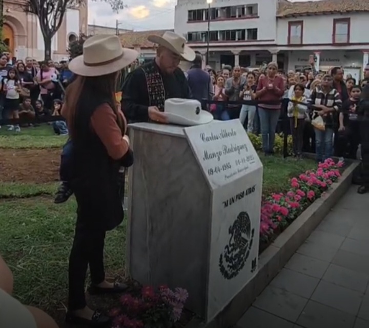 Por último, agradeció al ciudadano Alejandro Corza, quién donó un sombrero de mármol que fue colocado arriba de la placa recién develada, y puntualizó que seguirá escuchándose el nombre de Carlos Manzo.