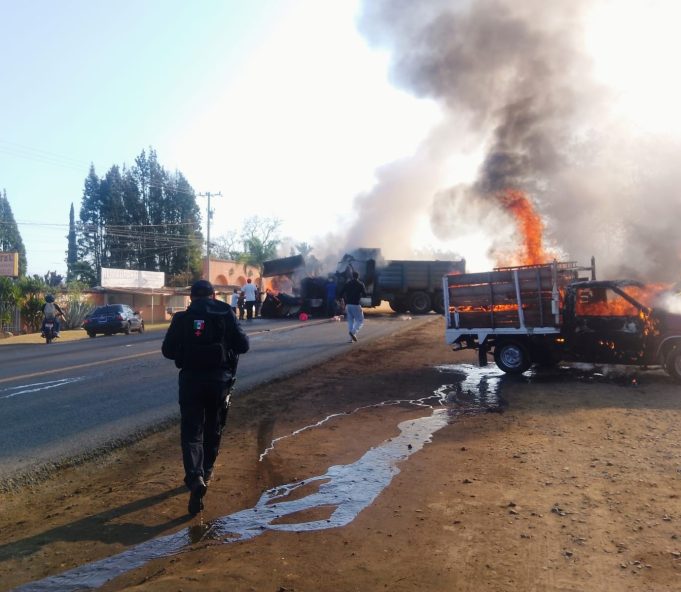 En la jornada de quema de vehículos que se reportan en los estados de Jalisco y Michoacán, se registró un enfrentamiento en La Piedad, a la altura del CERESO, en la carretera que conduce a Zamora, cuando fuerzas del orden sorprendieron a varios sujetos que realizaban la actividad ilícita, lo cual desató una balacera dejando tres presuntos delincuentes muertos y cuatro policías heridos, que fueron trasladados a diversos hospitales para su atención médica.