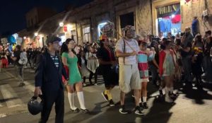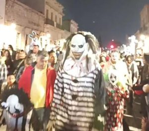Este sábado la Zombie Walk aquí en Morelia fue estelarizada por toritos de petate, temática para este año, en un caminar entre penumbras y fiesta de baile.