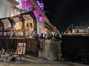 Ante la posibilidad de ser blanco de los destrozos, varios negocios del primer cuadro colocaron cartulinas en sus accesos. En ellas señalaban que en esos lugares también trabajaban y vivían mujeres y que respaldaban el movimiento feminista, en un intento por evitar que los inmuebles fueran vandalizados.