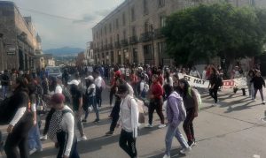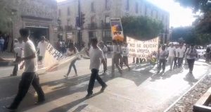 Así, se han dirigido por la calle de Cuautla habiendo dado vuelta en la Avenida Madero con rumbo al Centro histórico en Palacio de Gobierno: «nada con la fuerza, todo con la razón, libros sí, bayonetas no», es la consigna.