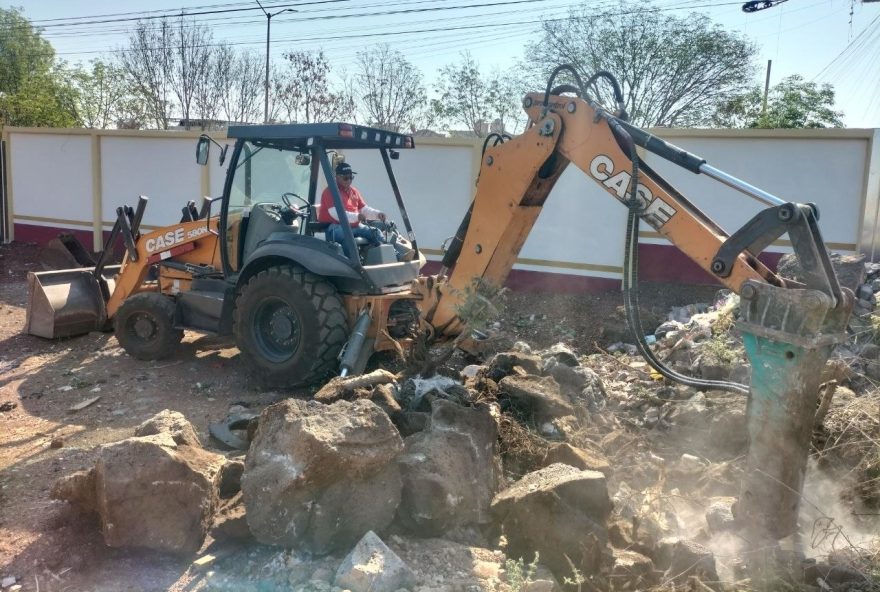 En la atención a zonas suburbanas, la Saderm también realiza labores de limpieza en un espacio de Villas del Pedregal, que servirá para actividades de esparcimiento y desarrollo para las y los estudiantes del fraccionamiento.