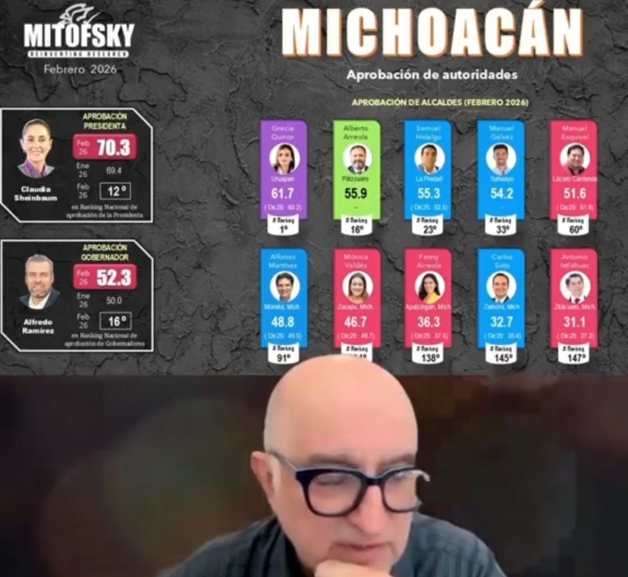 La casa encuestadora arroja también entre la evaluación de Michoacán que el gobernante Alfredo Ramírez se ubica por arriba de la media nacional