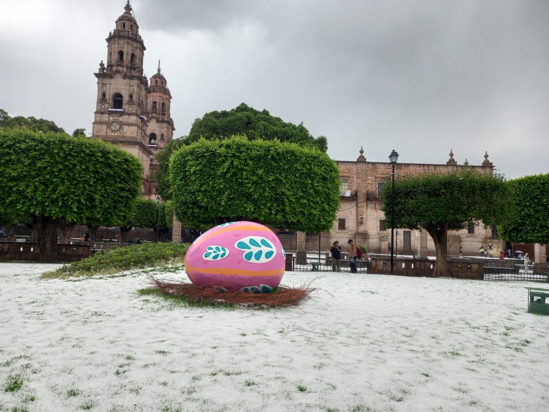 La lluvia con granizo de esta tarde sorprendió a morelianos, al dejar paisajes dignos de postales que fueron aprovechadas.