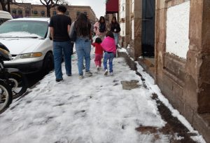 Tras la calma de la lluvia muchos morelianos y turistas salieron a tomarse sus fotos instagrameables y a «tocar» el hielo, al ser una experiencia que muy pocas veces se puede vivir.
