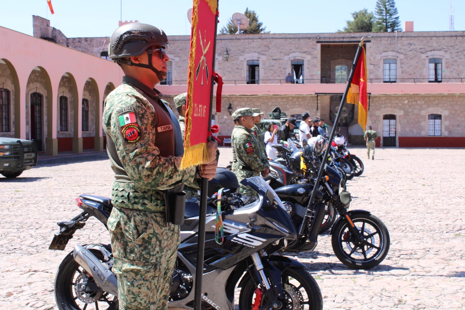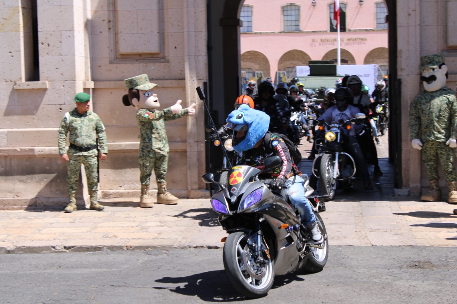 El Coronel del Infantería Diplomado Estado Mayor, Demian Yamil Mayoral Ojeda, Comandante del 12/o Batallón de Infantería de la 21/a Zona Militar, refirió que participan diferentes clubes de motociclistas y elementos castrenses en esta rodada, según lo confirmó en entrevista antes de la partida de los vehículos por la Avenida Acueducto para continuar por Avenida Madero, hacer una parada en Catedral y seguir hacia Quiroga.