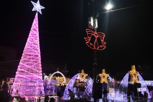 Ante la presencia de morelianos que se dieron cita en el primer cuadro, se encendió la red aérea colocada sobre la avenida Madero, así como, las luminarias que fueron colocadas en las plazas públicas y el nacimiento que ponen sindicalistas en la Plaza Valladolid.