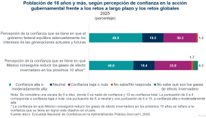 Entre septiembre y octubre de 2025, 60.0 % de la población de 18 años y más reportó tener un nivel de confianza alto o moderadamente alto en la mayoría de las personas.
