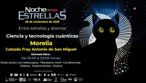 Este sábado 29 de noviembre tendrá lugar la Noche de las Estrellas 2025, evento con de divulgación astronómica considerado el más grande del país en su ramo, teniendo como tema central y denominación «La Ciencia y Tecnología Cuánticas: Entre Estrellas y Átomos», tanto en el municipio de Morelia como en el municipio de Lázaro Cárdenas.