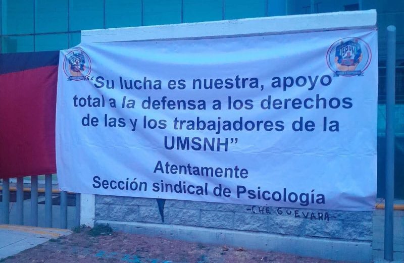 Profesores sindicalizados de la Universidad Michoacana han comenzado a manifestar su apoyo a la huelga estallada el lunes por la tarde noche por los empleados nicolaitas en la institución, y en varias facultades ya se encuentran colgadas mantas en que las secciones sindicales spumistas reiteran que se suman como sindicalizados a este recurso legal ante los incumplimientos y los abusos de Rectoría que encabeza la saliente Yarabí Ávila González, situación que también les afecta a los académicos.