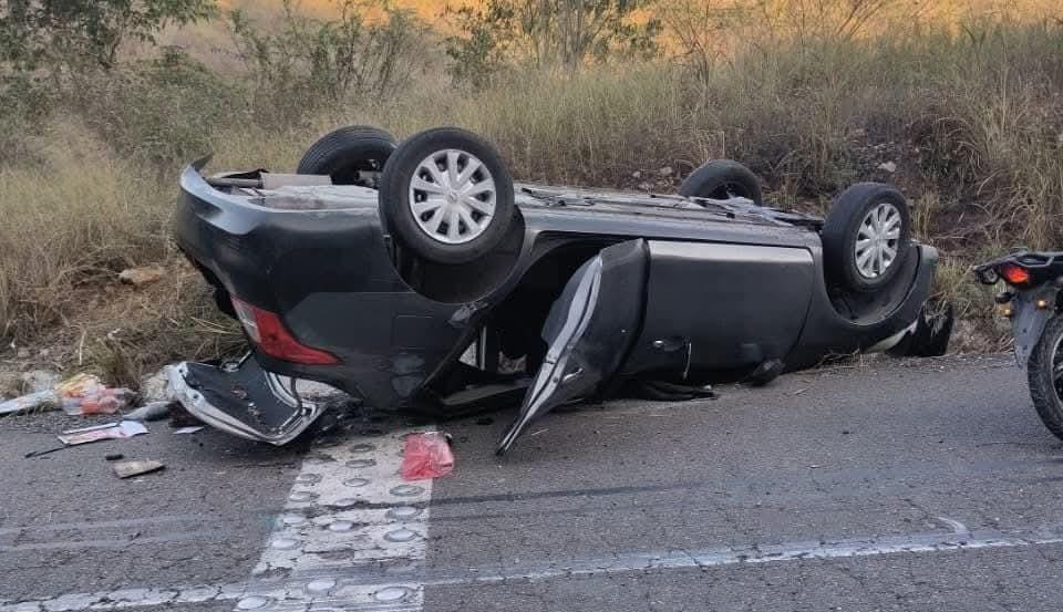 El aparatoso accidente se registró a la altura del kilómetro 261+700, del tramo carretero las Cañas – Feliciano, donde quedó volcado un Nissan Versa de color gris oscuro, con placas UPF-422-H.