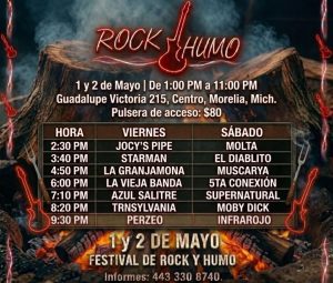Cerveza, Rock y humo parece ser la combinación perfecta dentro de lo que será el 1er Festival «Rock y Humo» en que 14 bandas locales que se dedican al longevo y venerado género deleitarán a los presentes durante los próximos 1 y 2 de mayo, ello en medio de una notable reducción de espacios de la escena rockera moreliana.