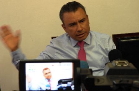 Tras la manifestación del Sindicato de Trabajadores al Servicio del Poder Legislativo (STASPLE), que impidió los trabajos parlamentarios, el diputado guinda, convocó a una improvisada rueda de prensa, para explicar el desencuentro que padeció con los trabajadores.