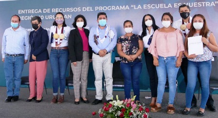 Uruapan del Progreso, Mich.- Con la finalidad de evitar el dispendio y desvío de recursos públicos, la Secretaría de Bienestar, Delegación Michoacán, en presencia de representantes del Gobierno del Estado y Ayuntamientos, a través del programa La Escuela es Nuestra (LEEN), entregó recursos de manera directa a Comités de Administración Participativa de siete planteles educativos ubicados en zonas indígenas de la región Uruapan y Pátzcuaro.