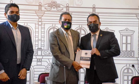 En presencia de los diputados Osiel Equihua, Arturo Hernández, Antonio Salas y Zenaida Brigido, el Fiscal General hizo entrega del Cuarto Informe Semestral