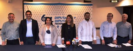 En rueda de prensa, acompañado de los congresistas de la Sexagésima Quinta Legislatura de Acción Nacional; Berenice Juárez Navarrete, Enrique Godínez del Río, Anabey García Velazco, Rodrigo Sánchez Zepeda y Armando Tejeda Cid, Quintana Martínez, resaltó que a las personas desempleadas se les apoyará durante 4 meses y reciban la cantidad de cuatro mil 402 pesos.