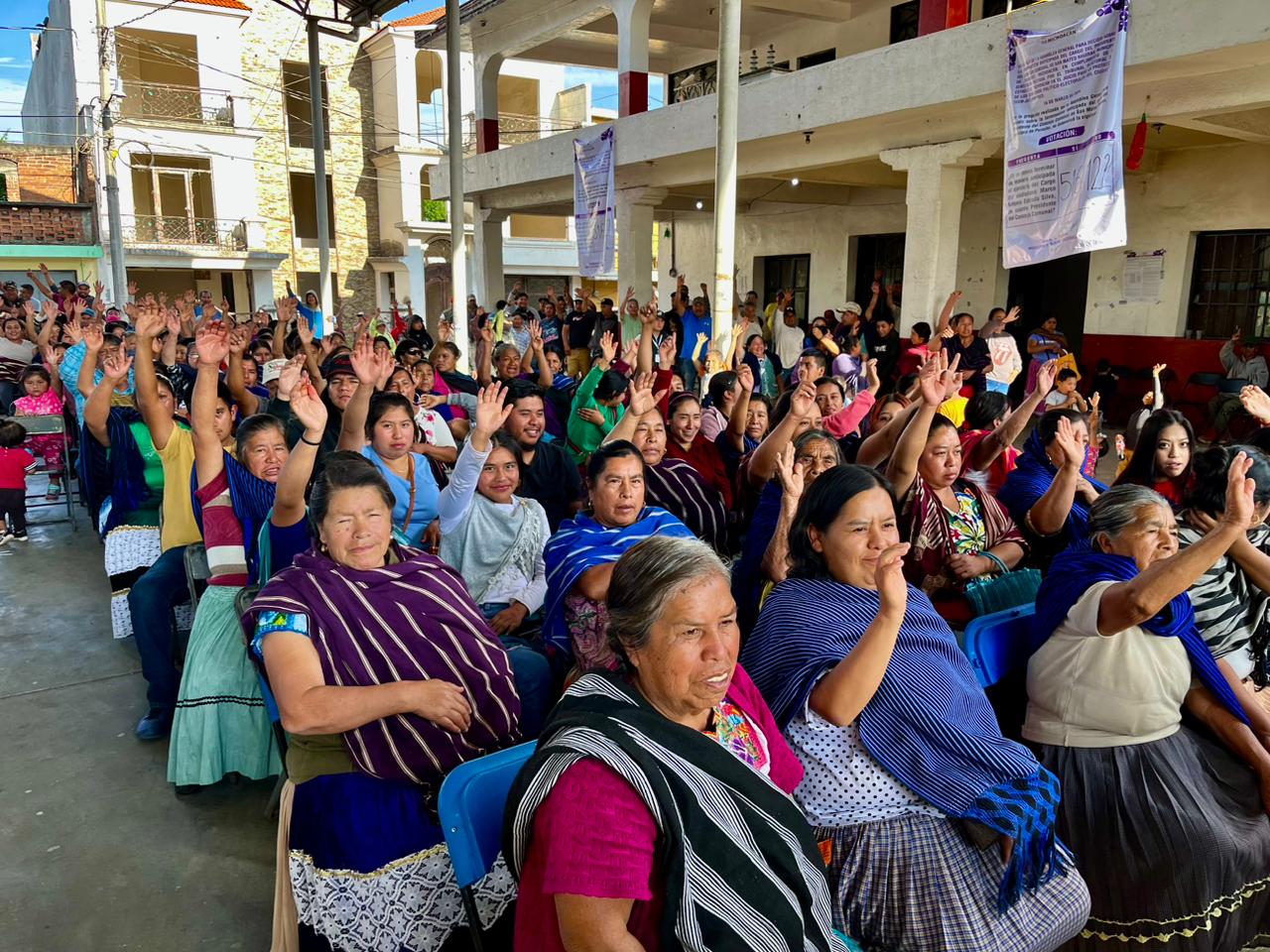 Una vez disipadas las dudas de las y los pobladores, la asamblea decidió realizar la elección de sus representantes a través de votación a mano alzada; asimismo las y los integrantes de la comunidad decidieron que su consejo fuera integrado por 8 consejerías de manera paritaria.