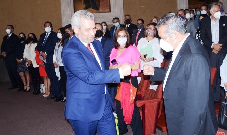 Frente a actuales y futuros diputados locales y federales, emanados de Movimiento de Regeneración Nacional (MORENA) y del Partido del Trabajo (PT), recibió la constancia a manos del TEEM, que confirmó que tuvo una votación de 722 mil 954 votos, que representa una diferencia de 47 mil 954 sufragios, por encima de su más cercano adversario.