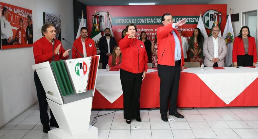 El secretario de Organización del CEN, Jorge Armando Meade Ocaranza, fue quien entregó las constancias y les tomó la protesta como titulares de la Presidencia y la Secretaría General del CDE del Revolucionario Institucional para el periodo 2026-2030.