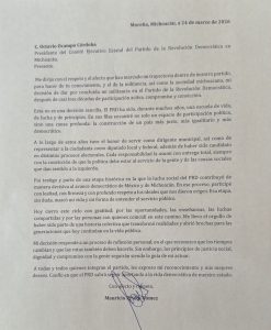 «Fui testigo y parte de una etapa histórica en la que la lucha social del PRD contribuyó de manera decisiva al avance democrático de México y de Michoacán. En ese proceso, participé con lealtad, con firmeza y con profundo respeto a los ideales que nos dieron origen. Esa etapa, sin duda, marcó mi vida y mi forma de entender el servicio público».