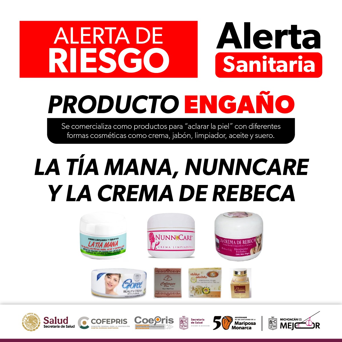La Secretaría de Salud de Michoacán (SSM), a través de la Comisión Estatal de Protección contra Riesgos Sanitarios (Coepris) alerta a la población sobre los riesgos asociados por el uso de cosméticos aclaradores de piel que contienen ingredientes no permitidos como el mercurio o que se comercializan de manera irregular.
