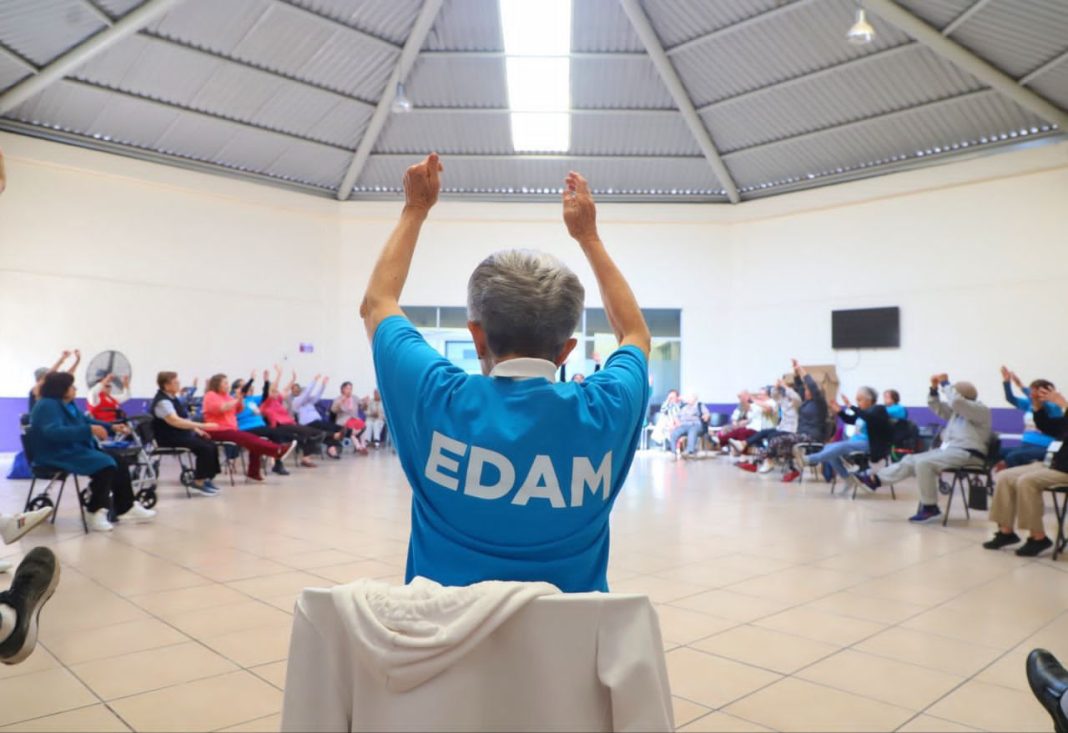 La presidenta honoraria del DIF Morelia, Paola Delgadillo Hernández, impulsa acciones para fortalecer la movilidad de las personas adultas mayores a través de la Estancia Diurna de Atención al Adulto Mayor (EDAM), donde se brinda atención especializada para promover un envejecimiento activo.