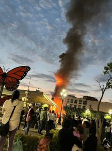 Zitácuaro, Mich.- Derivado del asesinato de la joven Ángeles Esquivel, de 24 años de edad, ocurrido el pasado domingo 7 de diciembre en la colonia Infonavit y en el que está presuntamente implicado un oficial de Tránsito Municipal de Zitácuaro, un grupo de manifestantes salió a las calles de la ciudad para exigir justicia y, durante la acción, quemaron el árbol navideño ubicado en la Plaza Cívica Benito Juárez.