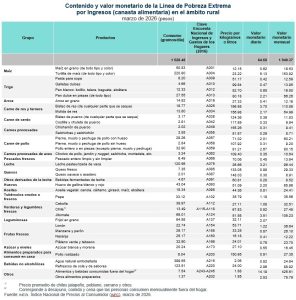 Líneas de pobreza extrema por ingresos (canasta alimentaria)