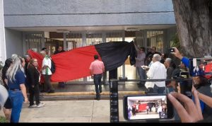 Hasta ahí llegó el dirigente Eduardo Tena Flores para el acompañamiento del cierre de puertas y cuelgue de banderas que de manera simultánea penden ya a las afueras de los edificios universitarios e inmuebles todos. Y señaló estar dispuestos a aguantar hasta seis meses de huelga, que es lo que le queda a la rectora saliente quitando el periodo de verano de vacaciones, «si es que no la sacamos antes» de este rectorado en que, dijo, hay «mucho odio, mucho rencor» y enojo hasta llegar «a mentadas de madre» que es lo único que han podido intercambiar la rectora Yarabí Ávila González y el propio Tena Flores, ante la falta de diálogo y el encono de los posicionamientos de ambas partes, la patronal y la sindical.