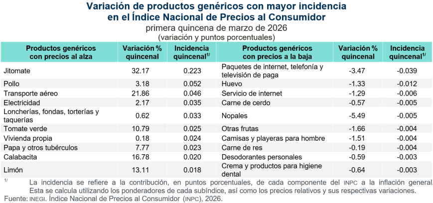 Productos con mayor incidencia en el INPC