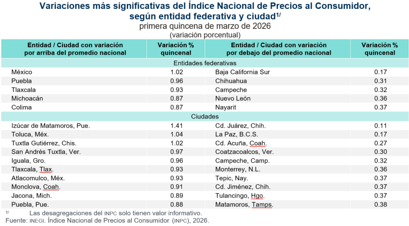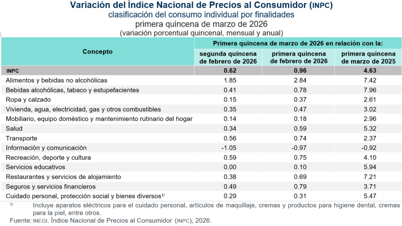 El índice de precios subyacente, que excluye bienes y servicios con precios más volátiles o que no responden a condiciones de mercado, incrementó 0.22 % a tasa quincenal.