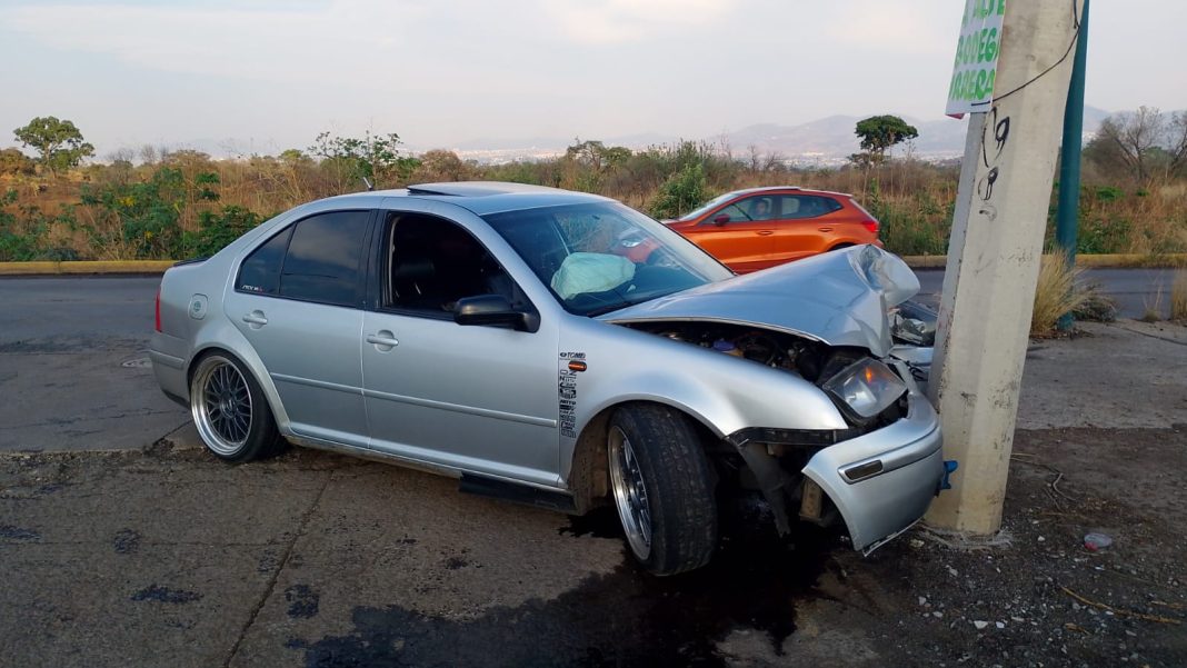 El vehículo, uno de color plata, terminó con severos daños en la parte frontal, principalmente en el cofre, fascia, además de activarse las bolsas de aire derivado del impacto.