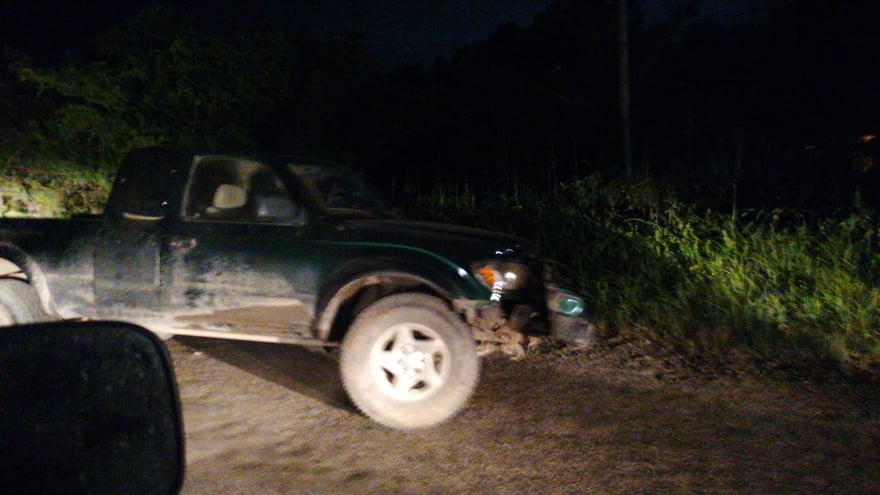 Chocaron dos camionetas una Tacoma color negra, una NP300 y vehículo de alquiler