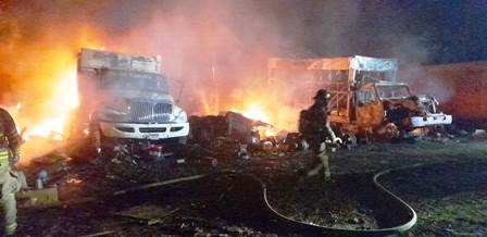 Una vez en el sitio los vulcanos trabajaron por más de una hora para lograr sofocar el siniestro, sin embargo, el fuego consumió al menos 6 camiones, varios de ellos de carga y dos del departamento de Limpia y Sanidad del Ayuntamiento local.