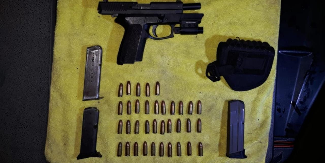 Por lo anterior, al arribar al lugar localizaron un vehículo de la marca Cadillac con las puertas abiertas, sin placas de circulación y en aparente estado de abandono, por lo que se procedió a realizar una inspección, localizando en el interior un arma calibre .9 mm., 3 cargadores y los cartuchos útiles.