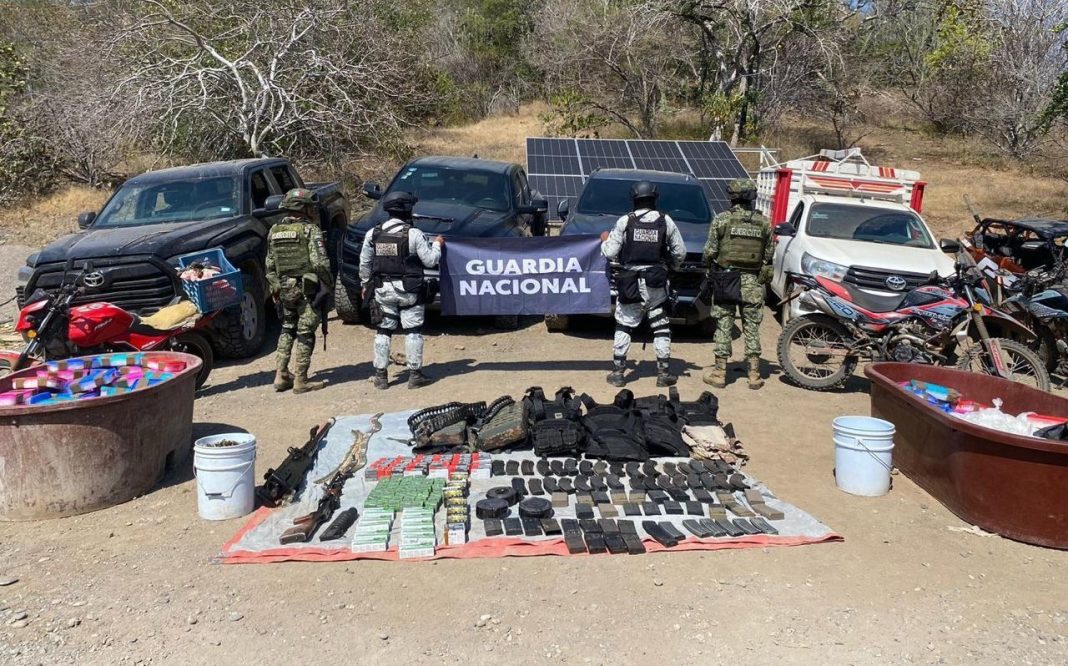 Los castrenses incautaron 2 ametralladoras Browning calibre .50”, 1 ametralladora RPD calibre 7.62 x 39 mm, 11 armas largas de diferentes tipos y calibres, 1 aditamento laza granadas calibre 40 mm, 3 granadas calibre 40 mm, 91 cargadores para diferentes tipos de armas, 2,878 cartuchos.