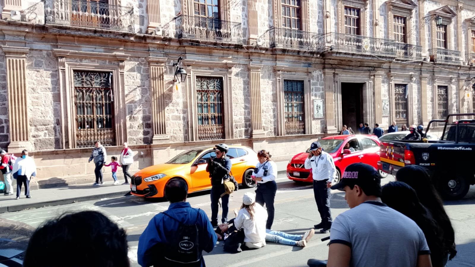 El accidente ocurrió durante la mañana de este martes sobre la avenida Francisco I. Madero Poniente, esquina con la calle Galeana, en las cercanías del Mercado de Dulces, justo frente a la Prepa 1 y del Colegio Primitivo y Nacional de San Nicolas de Hidalgo.