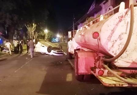 El auto, se impactó contra las llantas posteriores del lado izquierdo, de una pipa transportadora de agua, que se encontraba estacionada frente a la base del cuerpo de Bomberos Voluntarios. De los hechos, tomó conocimiento Tránsito y Vialidad Municipal. (RED 113 MICHOACÁN)