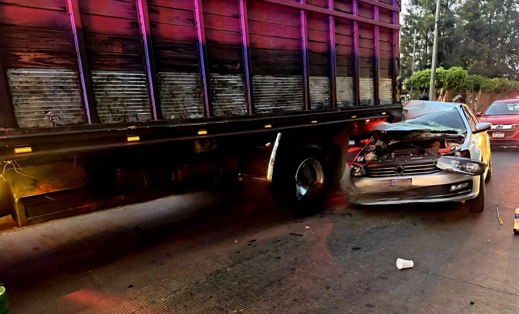 Se pudo conocer que cerca de las 06:30 horas, un auto compacto de la marca Volkswagen Jetta, circulaba con dirección de sur a norte cuando a la altura de la empresa refresquera Aga se impactó contra la parte posterior del camión de redilas, aparentemente debido al exceso de velocidad.