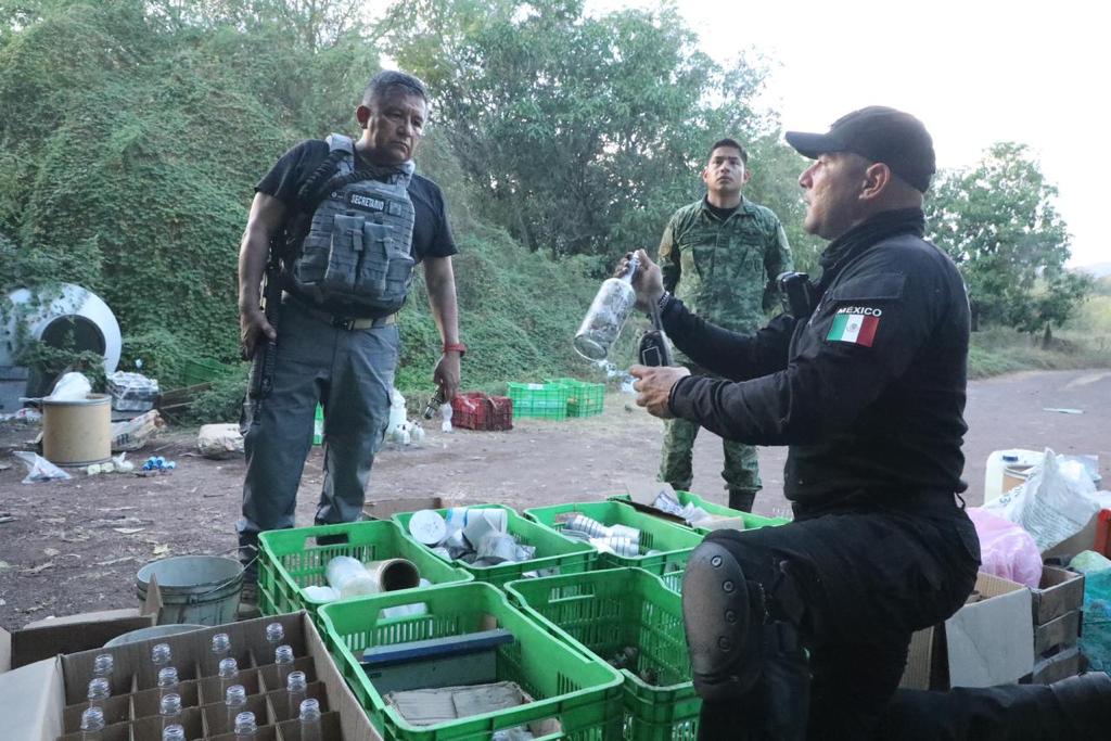 La Huacana, Michoacán.- Dentro del Operativo Conjunto para La Paz y Seguridad Nacional, personal de las secretarías de Seguridad Pública (SSP), y de la Defensa Nacional (Sedena), así como de la Guardia Nacional (GN), y la Fiscalía General del Estado (FGE), con base a una orden de cateo, desarticuló una fábrica y laboratorio de artefactos explosivos improvisados.